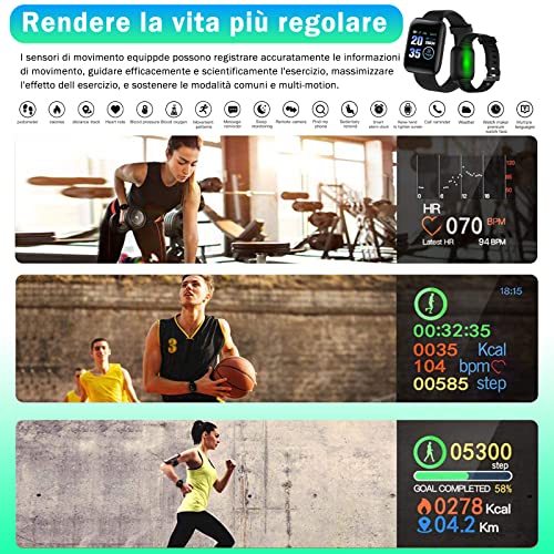 Smartwatch,Fitness Tracker IP68,Activity Tracker,Smart Activity Bracciale,con Frequenza Cardiaca/Monitoraggio del Sonno/Contacalorie/Contapassi,Collegare Directly All'USB per Caricare