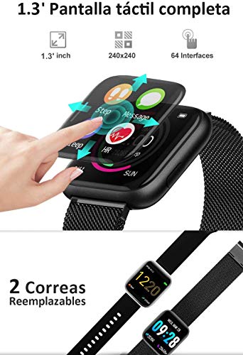 【Grande schermo tattile 】 Il touch screen a colori da 1,3 pollici ti offre una migliore esperienza visiva e, con due cinghie, può cambiare secondo le tue preferenze.