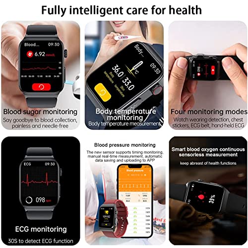 Smartwatch Glicemia Orologio Intelligente Glucometro,Ecg+Ppg Hrv Frequenza Cardiaca/Pressione Sanguigna/Ossigeno Nel Sangue/Monitoraggio Del Sonno,1.91"Hd Bluetooth Fitness Tracker,Uomo Regalo