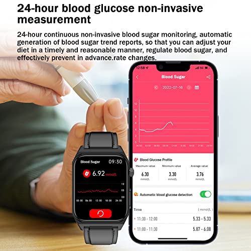 【Monitoraggio della salute】 L'orologio intelligente per la glicemia è il tuo assistente di vita. Monitoraggio 24 ore su 24 della frequenza cardiaca, ossigeno nel sangue, pressione sanguigna, glicemia, monitoraggio del sonno, promemoria sedentario, promemoria per bere;