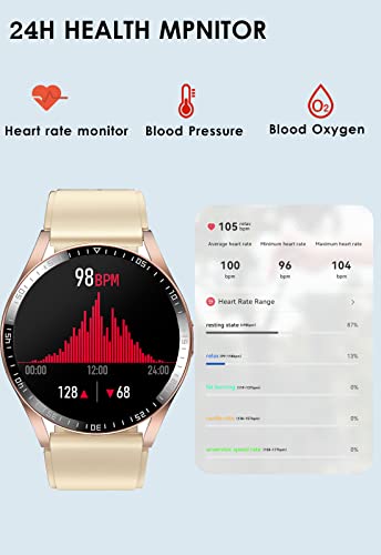 Smartwatch con Quadrante Bluetooth Che Chiama Fitness Smartwatch per Android iOS Impermeabile Contapassi con Cardiofrequenzimetro Monitoraggio della Salute Delle Donne e Contapassi (Oro)