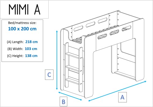 ➡️ [ Misure ] Le misure complessive di ogni taglia sono disponibili nella galleria e nelle impostazioni dell'articolo. Il letto a soppalco per bambini è prodotto secondo gli standard PN-EN 716-1 + AC: 2019-07, PN-EN 747-1 + A1: 2015-08, PN-EN 1725: 2001.