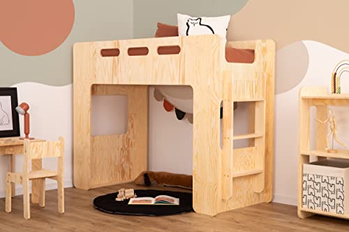 SMARTWOOD MIMI A Letto a soppalco per bambini 100x200 con spondina di sicurezza - letto a castello per bambini - Letto montessori bambino con spondina di sicurezza e reti doghe - Legno naturale