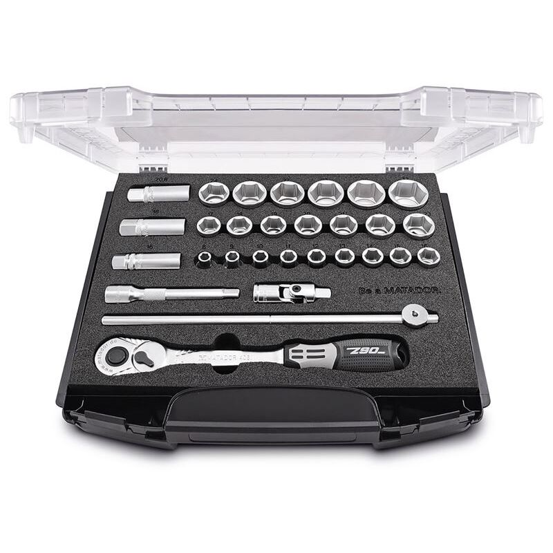 SmartyBox S5. Plug di ultima generazione -In tassi chiave. La S5 in 29 parti è il classico delle velocità di presa in 1/2 ”per tutte le viti di 8, 32 mm. La compilazione ideale di scricchiolii, accessori e inserti a chiave socket. Questa apparecchiatura standard è integrata da tre inserti a chiave per le candele. Tutti gli strumenti sono sistemati in modo sicuro in un inserto in schiuma morbida. La scatola di plastica di qualità è perfetta per l'uso mobile e taglia anche una buona figura in ogni laboratorio. Matador I-Boxx 72 protegge in modo affidabile le velocità dei tasti socket dall'acqua spruzzata e consente il massimo ordine. Può essere integrato nel sistema Matador. La robusta scatola di impilamento è resiliente fino a 5 kg e offre una panoramica perfetta con un coperchio di bloccaggio trasparente e una maniglia sfilata. Dimensioni esterne (BXTXH): 367x316x72 mm. Matador è uno dei pionieri del settore degli strumenti. Dal 1900 produciamo strumenti manuali di qualità attorno