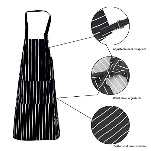 Smatime Grembiule da Cucina per Uomo e Donna, Regolabile Grembiuli con Tasche, Grembiule Regolabile in Cotone Lavabile per Barbecue, Cucina, Ristorante, Bar e Caffetteria(Strisce Bianche e Nere)