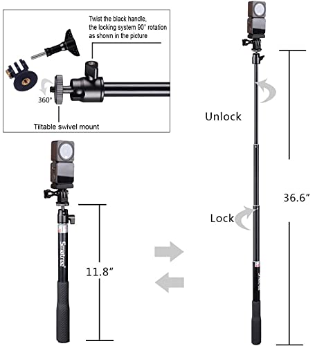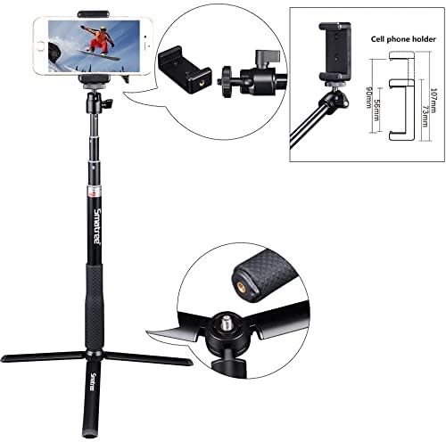 Smatree Bastone per selfie,supporto telescopico per selfie,treppiede compatibile con DJI Osmo Action 2,fotocamere GoPro,telefoni cellulari(56mm-80mm) e altre fotocamere con filettatura da 1/4"