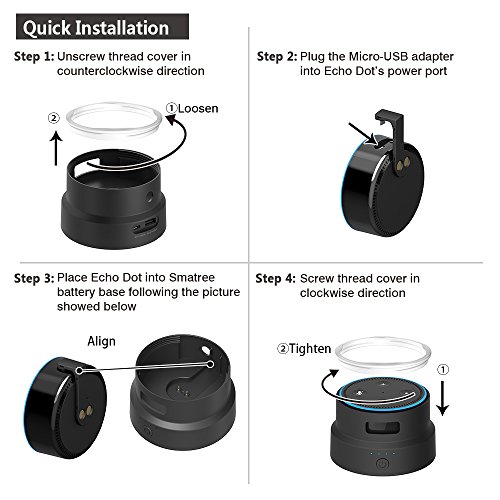 Smatree batteria portatile base/copertura protettiva per 2 nd generation Echo DOT