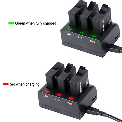 Smatree Batteria di ricambio (confezione da 3) con caricatore a 3 canali compatibile con GoPro Hero 8/7/6/5 nero