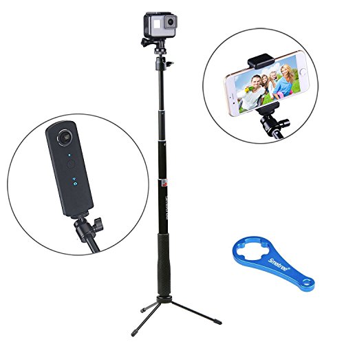 Smatree SmaPole Q3 Palo estensibile con treppiede per GoPro Hero 5/4/3+/3/2/1/Session/per Fotocamere Compatte/Cellulari (Con Adattatore treppiede in alluminio & Chiave)