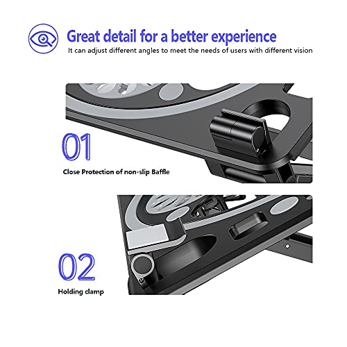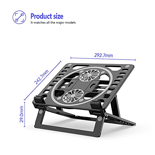 Design ergonomico: il supporto per laptop ha 6 dischi rotanti regolabili in altezza e direzionali di 180 gradi, che possono migliorare la tua esperienza visiva e ridurre il dolore al collo e alla schiena. Il pad di raffreddamento del laptop può essere regolato secondo necessità per ottenere lo stato più confortevole.