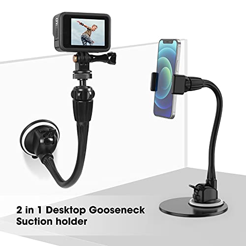 Supporto per fotocamera/telefono a collo d'oca: quando la ventosa è collegata alla base del blocco di metallo, viene utilizzata una base per fotocamera/telefono. Design flessibile a collo d'oca molto comodo per guardare i video.