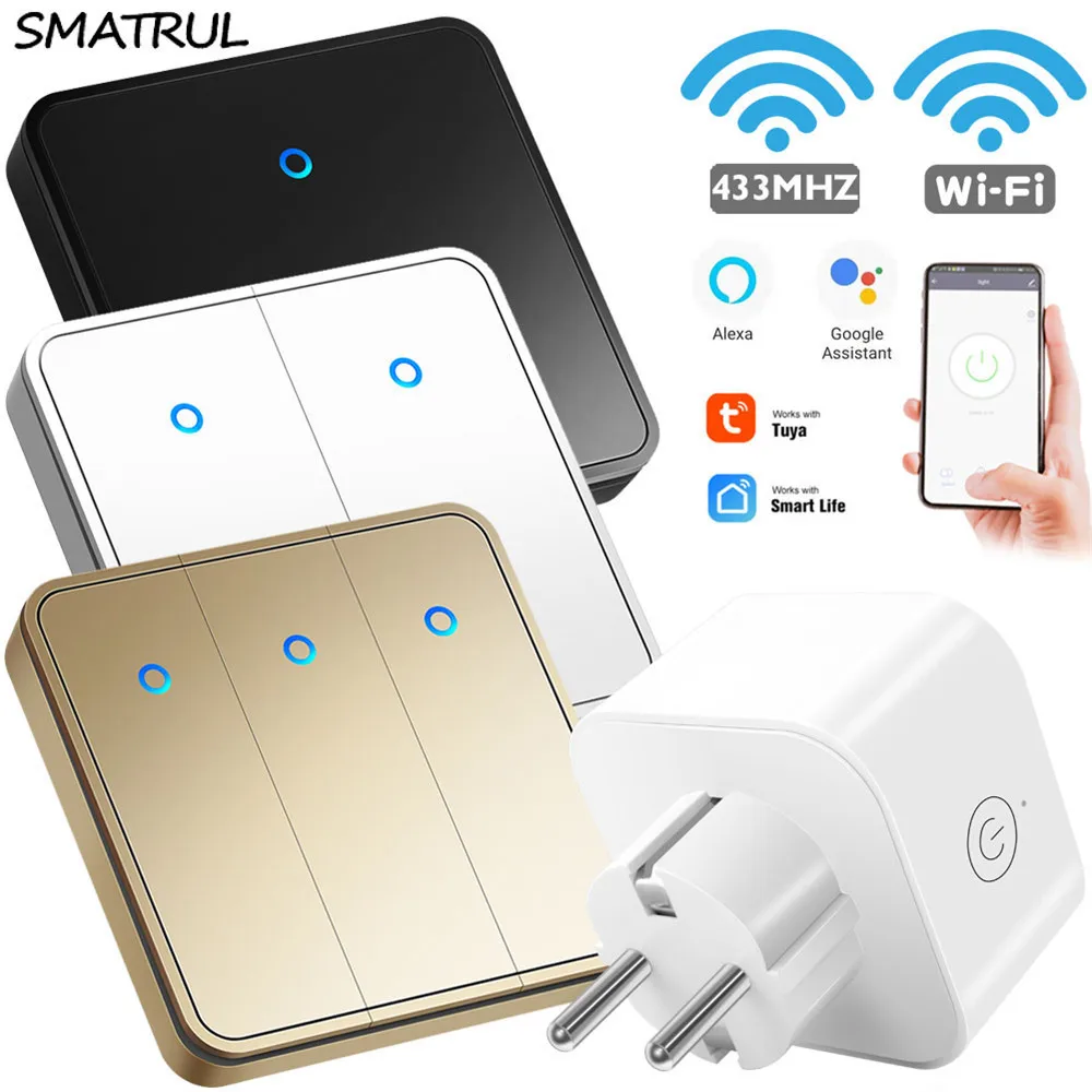 SMATRUL Tuya Smart Life Wireless Electrical Socket Switch Light EU Plug Timing Wall Outlet WiFi 433Mhz For Google Home Alexa