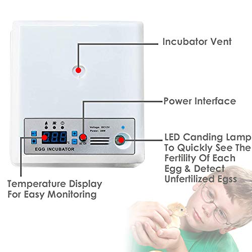 S SMAUTOP Incubatrice per Uova, incubatrice per Uova Automatica per 16 Uova, Piccoli boccaporti per pollame Controllo Automatico della Temperatura e dell'umidità per polli, Anatre, oche in casa