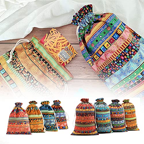 S SMAUTOP Sacchetti Regalo, 20 Pezzi Sacchetto di Tela di Lino in Stile Etnico con Coulisse, Mini Sacchetti di Stoccaggio Leggeri per Imballaggio Fai da Te per Matrimoni, Feste, Compleanni, Natale
