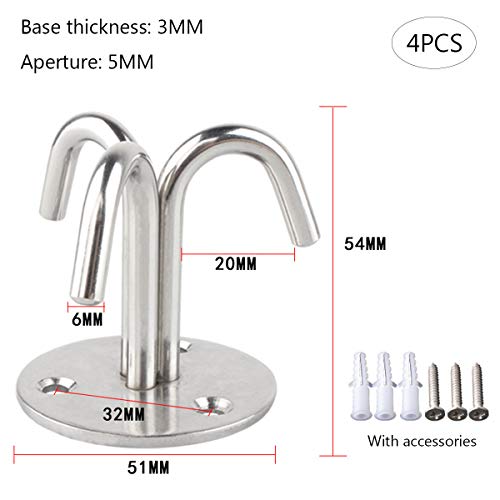 Smavles Ganci da Soffitto 4 Pezzi Gancio Appendiabiti Ganci da Soffitto in Acciaio Inox Resistenti, con Base Rotonda, Montaggio a Vite, per Appendere Luci, Ventilatori, Cestini e Zanzariere, ecc.