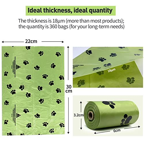 SmeeSwee 360 sacchetti di cacca per rifiuti di cani, biodegradabili, compostabili, 24 rotoli da 15, extra spessi, resistenti al 100% a prova di perdite (18 µm)