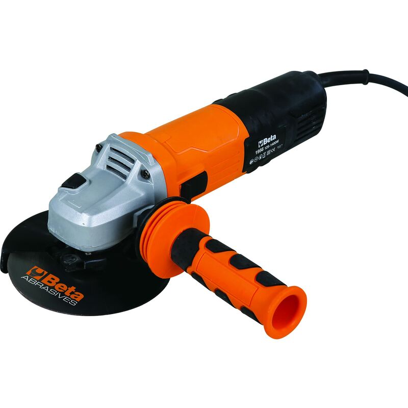 Smerigliatrice angolare Beta 1956 125 da 1400W di potenza. Ideale per lavori di taglio, rettifica e sgrossatura. Dotata di un potente motore da 1400W regolato da un potenziometro che permette di variare la velocità da 3000 a 10000 giri. Struttura con testa ribassata per agevolare il lavoro in ambienti ristretti. L' impugnatura ergonomica antiscivolo permette un maggiore comfort e sicurezza addizionata dall'impugnatura laterale antivibrazione posizionabile su entrambi i lati. La smerigliatrice Beta è dotata anche di protezione contro il riavvio accidentale. Copri disco con sistema “tool-less” per uno sgancio rapido. Dispositivo blocco albero per una rapida sostituzione del disco. Interruttore di accensione a slitta con blocco. Feritoie di ventilazione protette contro l'infiltrazione della polvere per un raffreddamento ottimale.