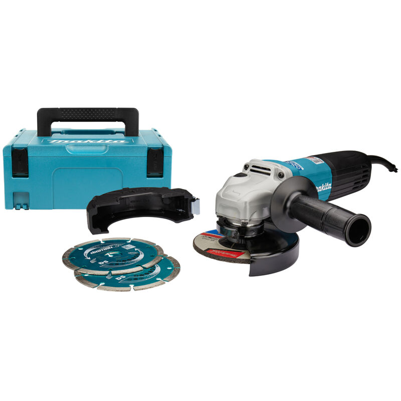 Dettagli: Il sistema SJS 2 protegge l'utilizzatore e la macchina in caso di blocco del disco Basso livello di vibrazioni Anti-restart, protegge l'utente dall'avvio accidentale dopo un'interruzione di corrente Tecnologia MAKPOWER: protezione elettronica da sovraccarico Angolo di orientamento dell'impugnatura modificato per un maggiore comfort dell'utente Nuovo alloggiamento rinforzato e pulsante di blocco Dotazione: Fornito con: 821550-0 - Set di 2 MAKPAC 837672-6 - Stampo MAK-PAC per smerigliatrice/levigatrice a disco 782407-9 - Chiave di serraggio 2 x D-61139 - Disco diamantato DIAMAK 125 mm D-18465 - Mola con mozzo offset 125 x 6 x 22,2 mm. Caratteristiche: Potenza nominale 1400 W Velocità a vuoto da 2800 a 11000 giri/min Velocità massima a vuoto 11000 giri/min. Diametro del disco 125 mm Diametro del foro 22,23 mm Tasso di vibrazione triassiale (ah) 6,5 m/s² (ah) Vibrazione 3ax di levigatura (ah) 2,5 m/s2 Vibrazione 3ax levigatura (ah) 6,5 m/s² Pressione sonora (Lpa) Pressione