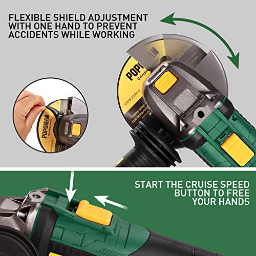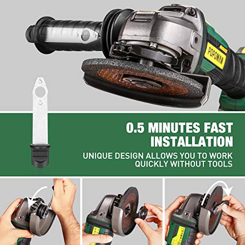 Smerigliatrice Angolare a Batteria 18V Brushless, POPOMAN 10000RPM, 125mm, 4.0Ah Batteria, Caricatore Rapido, con Impugnatura Antivibrante, 5pcs Ruote per Lucidatura-MTR420B