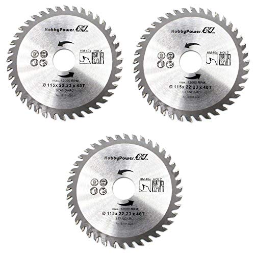 HM - Lama per sega per smerigliatrice angolare Flex, Ø 115 mm x 22,23 mm, 40 denti, per legno e plastica