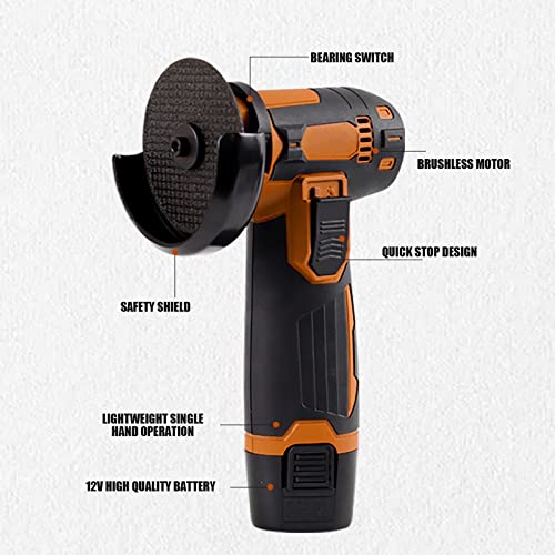 【Compatto】 La smerigliatrice angolare da 12 V è progettata per essere leggera a soli 1100 g. e può essere azionato da uomini o donne con una sola mano. Ampiamente utilizzato per la molatura, il taglio, la levigatura e la lucidatura di vari materiali, tra cui metallo, piastrelle, cemento, tubi, condotti e altri materiali solidi.