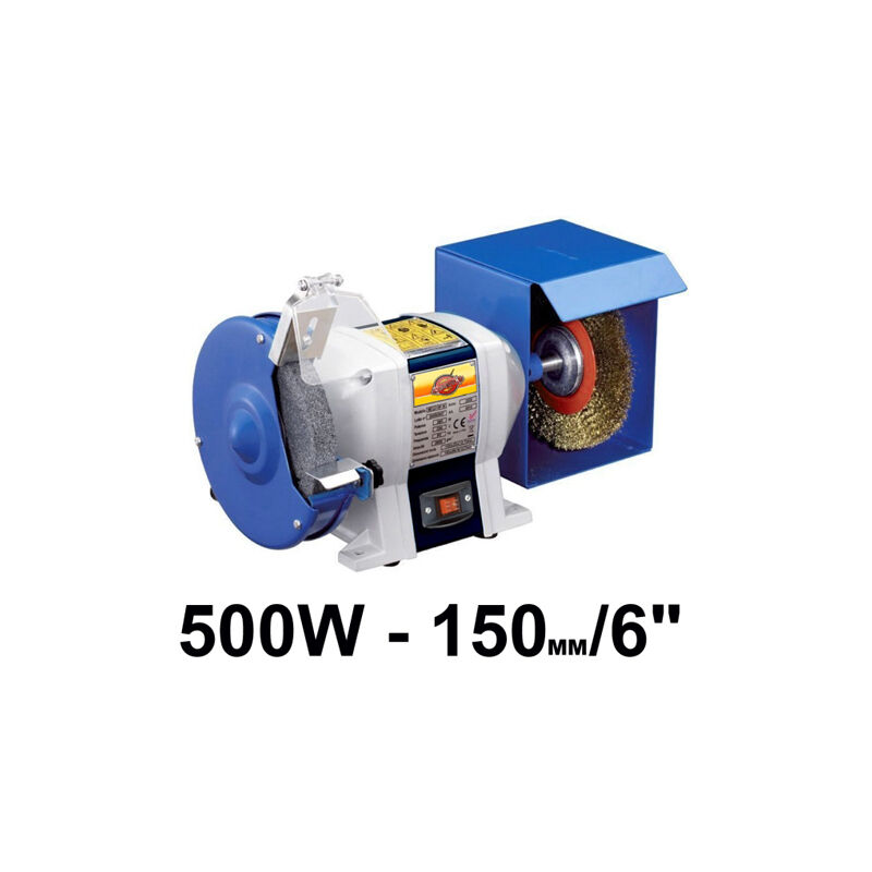 Smerigliatrice combinata da banco. Insostituibile attrezzo per affilare utensili da taglio, punte per trapani o per levigare parti metalliche, in acciaio ecc. ecc. Dotata di mola in pietra e spazzola metallica ottonata. Costruita in materiali solidi e destinati a resistere nel tempo, potente motore da 500W! - Alimetazione (V/Hz): 220/50 - Potenza (W): 500 - Velocit� a vuoto (giri/min): 2950 - Diametro esterno mola (mm): 150 - Diametro foro mola (mm): 12,7 - Spessore mola (mm): 20 - Diametro esterno spazzola (mm): 150 - Diametro foro spazzola (mm): 22 - Spessore spazzola (mm): 20 - Dimensioni LxPxA (mm): 350x150x200 - Peso circa (Kg): 12,0