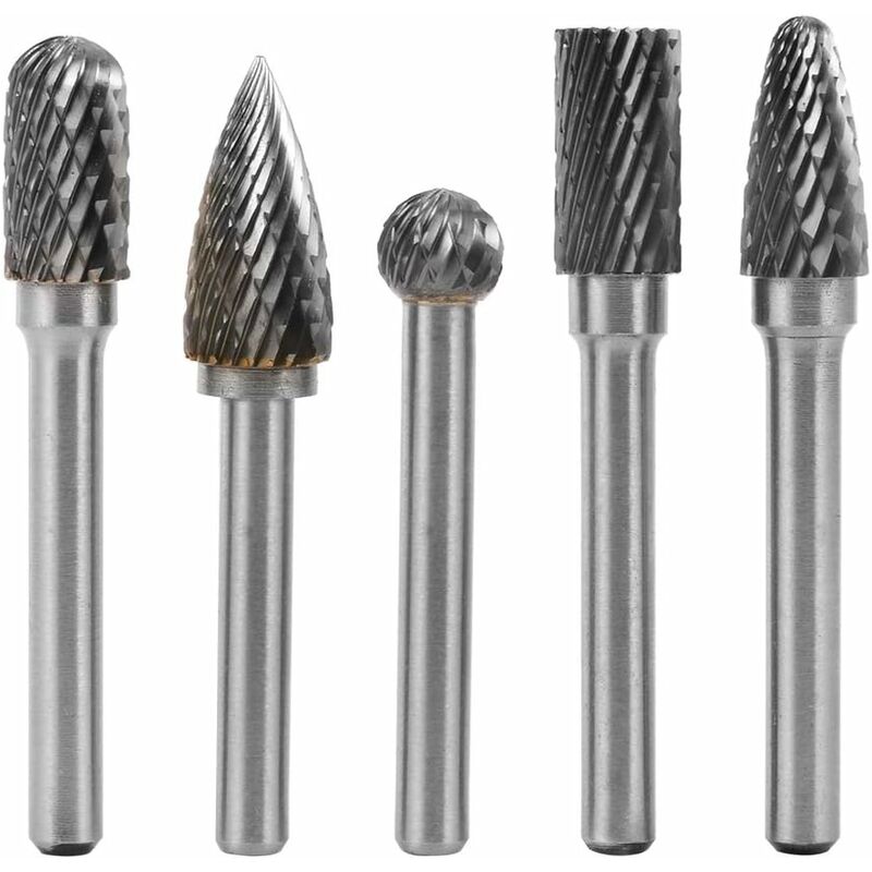 Bave in metallo duro estremamente versatili utilizzate nella costruzione di stampi Diametro del gambo: circa 1/4 di pollice (6 mm), diametro di taglio: 8 mm Compatibile con la maggior parte degli utensili rotanti Silverline, GMC e Dremel Materiali metallici e non metallici (osso, giada, pietra), arti dell'intaglio Durezza fino a HRA≥85 Perché il nostro set di frese rotative in metallo duro sarebbe la scelta migliore? 1) Alta qualità: questo set di 5 frese in carburo di tungsteno è realizzato in carburo di tungsteno trattato termicamente di alta qualità, garantendo che la sua durezza possa raggiungere HRC70. 2) Strumenti versatili: perfetti per lavori di dettaglio, ampiamente utilizzati per la lavorazione dei metalli, la lavorazione del legno, l'ingegneria dei modelli, l'intaglio del legno, la creazione di gioielli, la saldatura, la smussatura, lo stampaggio, la sbavatura, la molatura, ecc. 3) Forme incluse: a forma di albero di pony, a forma di cono rotondo, a forma di cilindro con