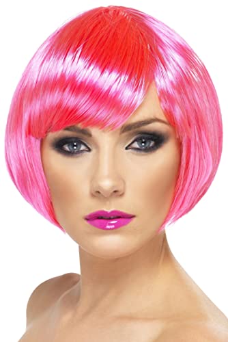 Smiffy's Smiffys Parrucca da sventola, Rosa Fosforescente, Corta con frangetta Donna, Fluo, Taglia Unica, 42051