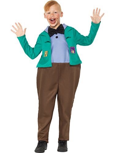 SMIFFYS 41544L - Costume con licenza ufficiale Roald Dahl Deluxe Augustus Gloop, per ragazzi, verde, L - età 10-12 anni