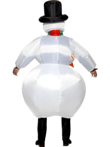SMIFFYS Smiffy's Costume Pupazzo di neve gonfiabile, Bianco, con body, cappello, sciarpa e valvol, Cappe per Adulti, Taglia unica, 38155