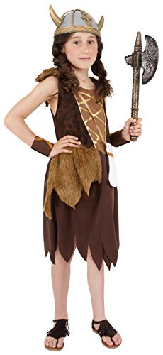 Smiffys Costume da ragazza vichinga con abito e polsini, 4-6 Anni
