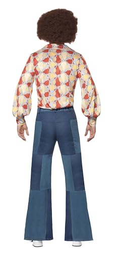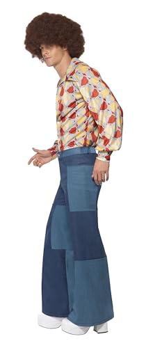 Smiffys Pantaloni da uomo a campana con quadri, effetto jeans Stile anni '1970