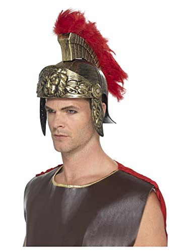 Smiffys Elmo spartano romano,Oro e rosso,in plastica, con piuma staccabile