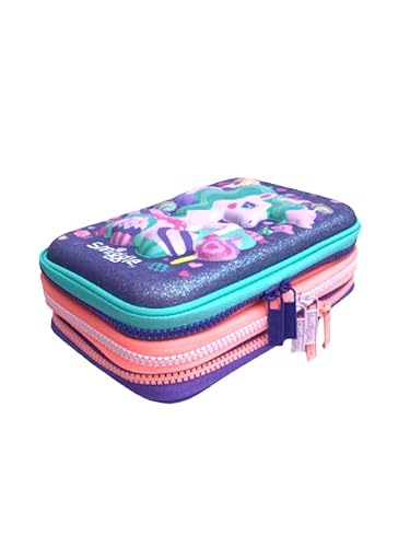 Smiggle 'Splendour' Astuccio triplo rigido (unicorno viola glitterato), Viola, Astuccio rigido