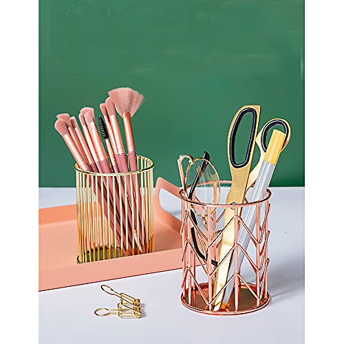 Smilbaley 2Pcs Portamatite, Rotondo in Ferro Battuto Oro Rosa, Porta Pennelli per Trucco, Tazza Organizer per Pennelli Trucco, Portapenne in Metallo con Portapenne in Oro Rosa, Portapenne in Metallo