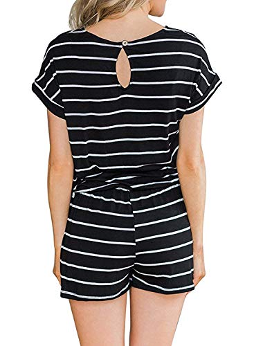 Smile Fish - Tuta da donna estiva casual a righe elastico in vita con tasca