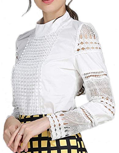 Smile Fish Sorriso Pesce Donne Pizzo Manica Lunga Elegante Chiffon Camicetta Vintage Hollow Out Pulsante Giù Business Top Collo Pieghe Ufficio Camicia bianco 36