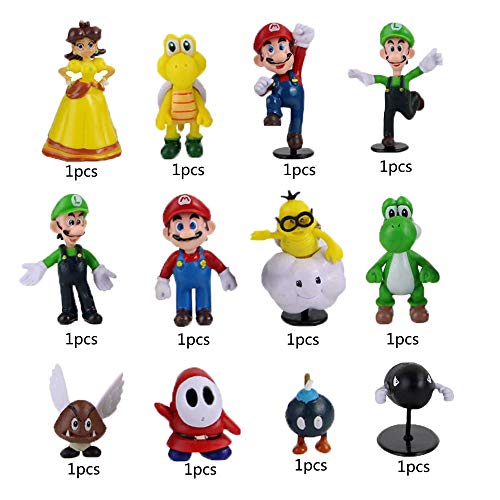 Smileh Figure Super Mario Figurine per Feste di Compleanno 12PCS Mario Bros Mini Figure Topper Super Mario Decorazioni per Torte