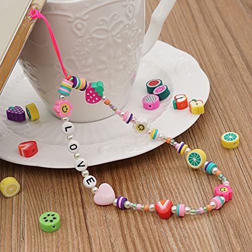 Più ciondoli per telefono: collana con perle in ceramica in stile bohémien con molti piccoli ciondoli interessanti, come lettere Love, faccine sorridenti, cuori d'amore, frutta, cristalli, perle di vetro, molto carini. Una varietà di stili tra cui scegliere per soddisfare le tue esigenze individuali, ce n'è sempre uno che ti piace