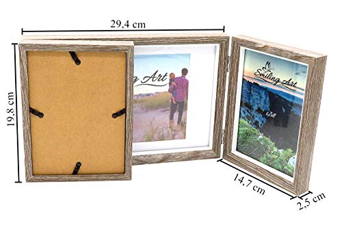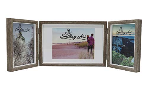Smiling Art Cornice portafoto Pieghevole per 3 Foto in Formato Orizzontale e Verticale (Grigio scuro, 2 x 13 x 18 cm + 1 x 15 x 20 cm)