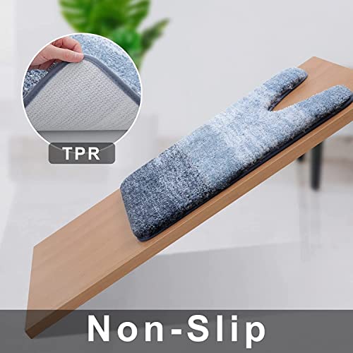 Smiry Tappetino per WC a forma di U, in microfibra, antiscivolo, morbido, per bagno, lavabile in lavatrice, 50 x 60 cm, blu
