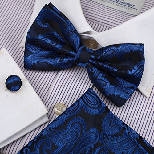 Dan Smith DBC3B01 - Papillon pre-annodato, a vari motivi, con fazzoletto e gemelli abbinati DBC3B01C Taglia unica