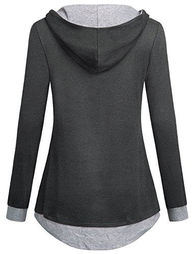 Anna Smith Felpe con Cappuccio Jumper Donna, Maglie a Manica Lunga Top da Donna con Scollo a V Tunica con Collo Arrotondato Camicetta da Donna Faux Twinset Pullover Felpa College Grigio Scuro L