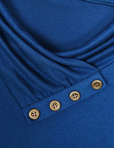 Anna Smith T-Shirt a Manica Lunga da Donna, Drape Collo a Sciarpa Collo Patchwork Asimmetrico Orlo a Forma di Collo Che aderisce a Vita Alta Camicetta Tops Lattering Mock Dolcevita Camicie Blu L