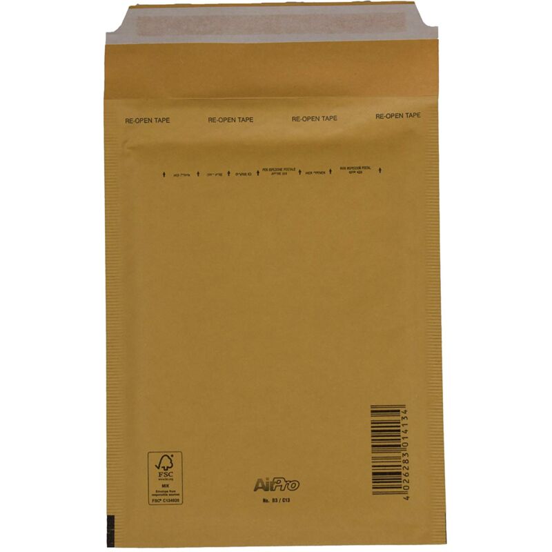 Confezione da 5 buste imbottite in plastica dorata. Ogni busta ha una dimensione interna di 150 mm x 215 mm. Realizzato in carta certificata FSC.