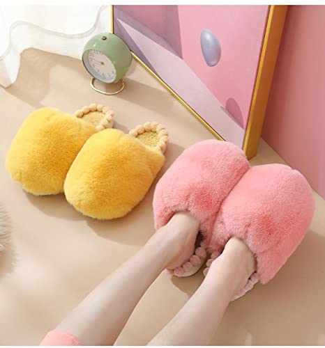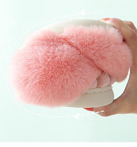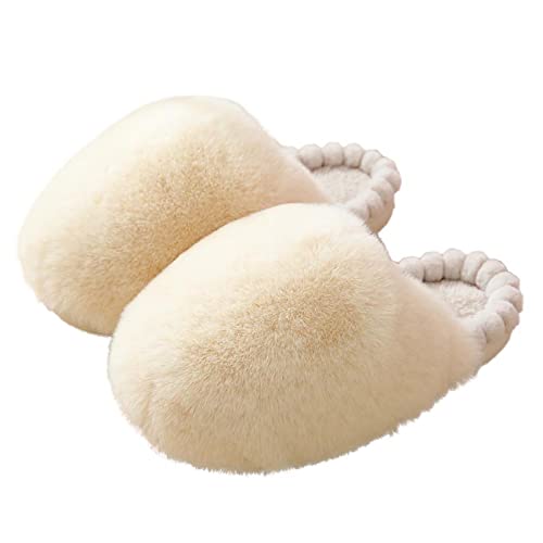 SMIUPIN Morbide e comode pantofole da donna in pelliccia di coniglio artificiale, calde scarpe da casa invernali,35-36,beige