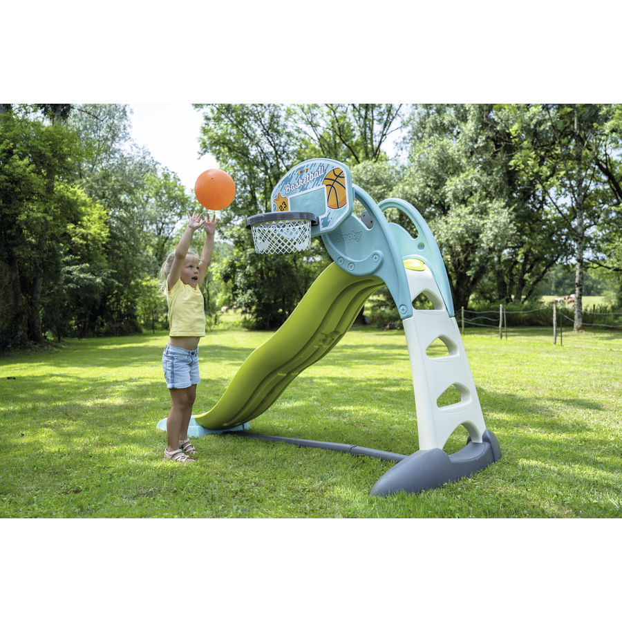 Dettagli del prodotto: Età: da 3 anni Divertimento illimitato all'aria aperta - con il versatile cesto per palline Smoby 3-in-1 Basket ! Trasforma in un attimo gli scivoli da giardino di Smoby in un parco giochi interattivo e incoraggia i bambini a fare attività fisica. Questo cesto per le palline Basket offre tre diverse possibilità di posizionamento Posizionato lateralmente, permette ancora il divertimento dello scivolo e sfrutta l'altezza dello stesso per lanci spettacolari. Posizionato sul davanti, come nei giochi arcade, incoraggia a prendere la palla con i piedi, una sfida speciale per i giovani giocatori. Montaggio a parete: i ganci a muro in dotazione consentono un montaggio flessibile all'altezza desiderata, per adattare il cesto all'altezza dei bambini. Il canestro 3 in 1 Basket è compatibile con gli scivoli Smoby XL e Super Megagliss ed è dotato di una rete flessibile e resistente. Grazie alla plastica stabile ai raggi UV, il cesto mantiene i suoi colori brillanti anche sotto la luce del sole. Il pallone non è incluso nella fornitura Prodotto in Francia Dimensioni e peso: Dimensioni da montato (lunghezza x larghezza x altezza): 42,3 x 54 x 54,6 cm Peso: 2,13 kg Materiale e cura: Materiale: plastica Istruzioni per la cura: pulire