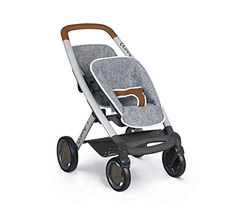 Smoby gemellare Grigio Fino a 42 cm - Passeggino per Due Bambole con Design Quinny, per Bambini dai 3 Anni in su, Colore, 52 x 38.5 x 65.5 cm, 253204
