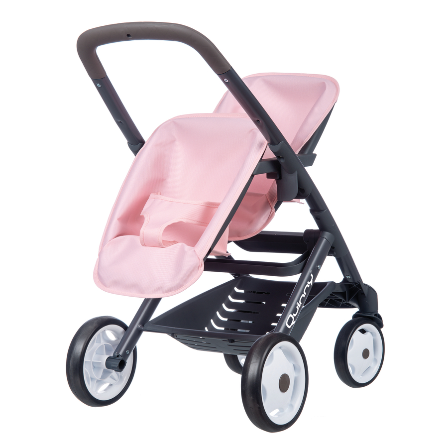 Finalmente un passeggino gemellare per portare due delle tue bambole preferite a fare una bella passeggiata! Moderno passeggino nell'inconfondibile design Quinny. L'impugnatura ergonomica Easy-Gripp e i rivestimenti delle sedute sono in tessuto sintetico (pulibili con un panno umido). Sono incluse ruote gommate silenziose. Proprio come l'originale. Consegna senza bambola, adatto a bambole fino a 42 cm. Dettagli del prodotto: Dimensioni (lunghezza x larghezza x altezza): 54,5 x 38,5 x 64,0 cm Materiale: plastica/metallo Adatto a bambole fino a 42 cm Consegna senza bambola Età: da 3 anni A proposito di Smoby: Uno dei più noti produttori di giocattoli francesi, Smoby Toys sa cosa rende felici i bambini e soddisfatti i genitori: giocattoli innovativi che aiutano i piccoli a scoprire e ad allenare le proprie abilità, allegramente colorati e pieni di idee. Perché i bambini sono nati esploratori! Comprendono e sperimentano il mondo attraverso il gioco e le prove. Ecco perché i giocattoli sicuri e adatti all'età sono così importanti. Smoby Toys è un esperto in giocattoli testati basati sulle ultime ricerche educative. Ma la cosa più importante è: giocare con i prodotti Smoby è super divertente!