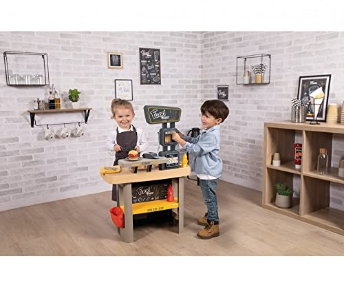 Smoby - Roleplay Food Corner Restaurant,7600310910, +3 Anni, 29 Accessori, 2 Giochi in 1: Cucina e Angolo per I Clienti